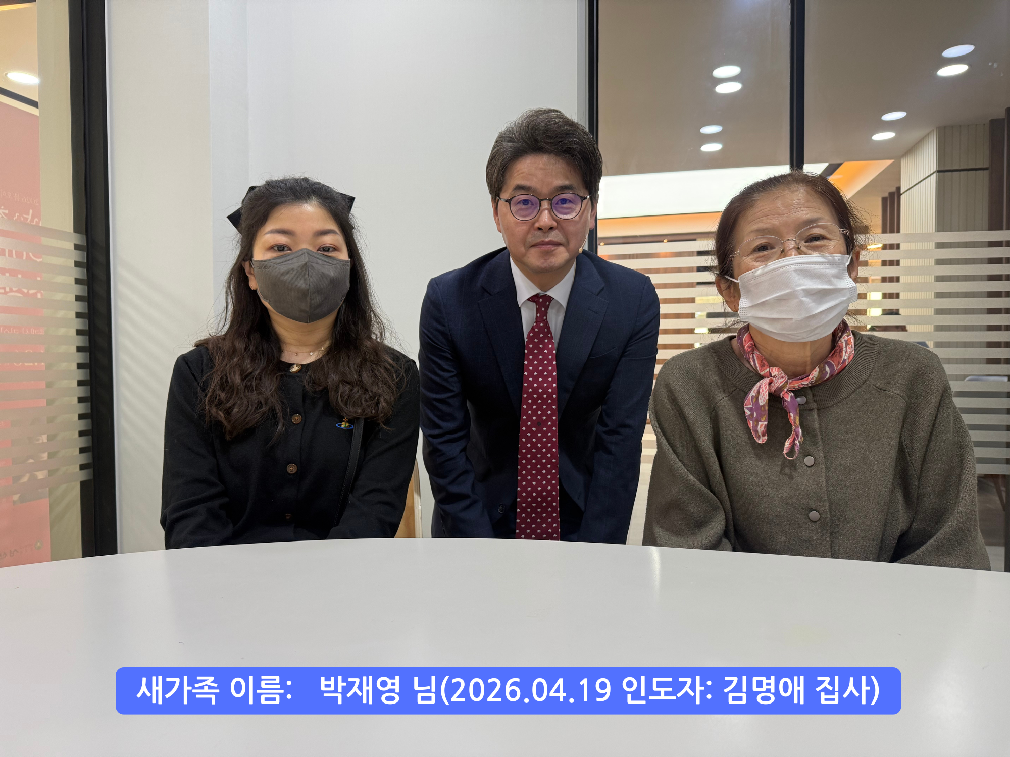 [260419 등록 새가족] 박재영 님 작성일26.04.19 17:04 본문 공유 둥록 새가족 : 박재영 님인도자 : 김명애 집사 다음글[260405 등록 새가족] 성한나 님 26.04.05