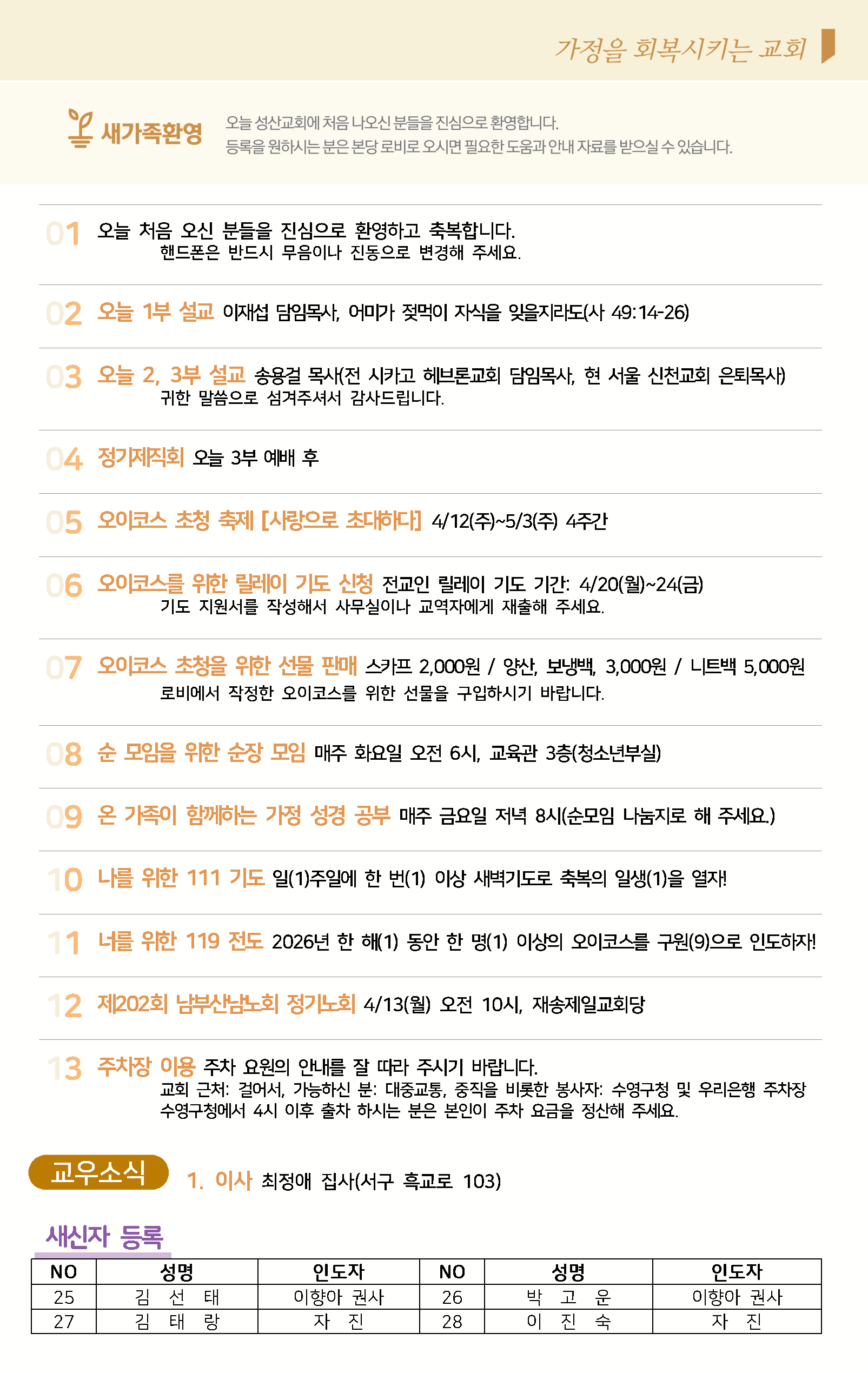 • Copyright © 대한예수교장로회 성산교회 All rights reserved.
