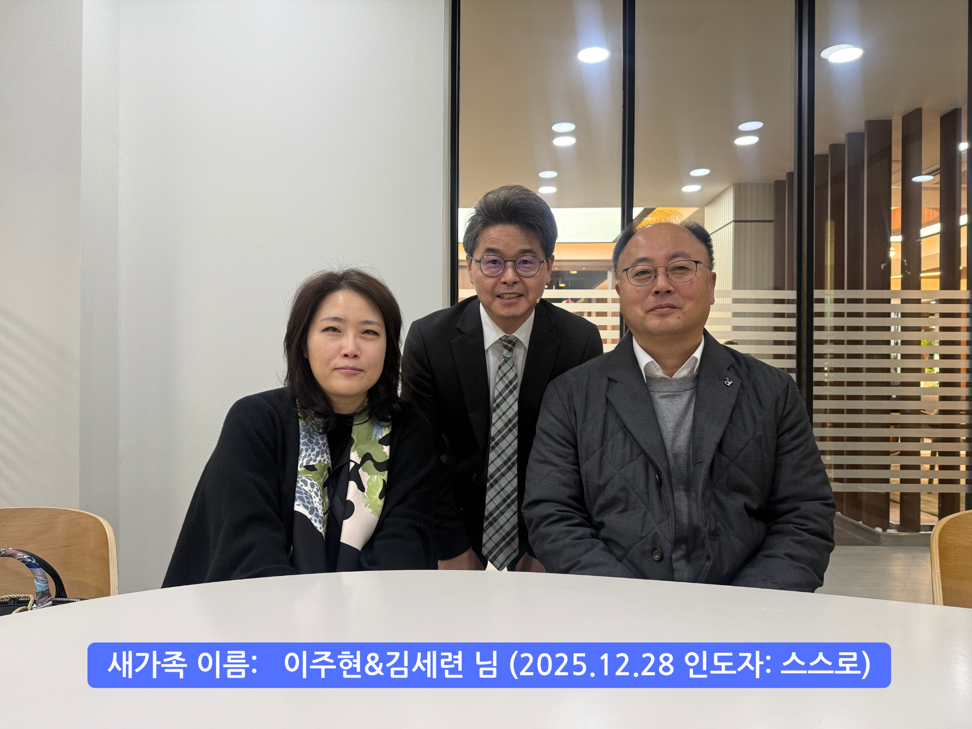 [251228 등록 새가족] 이주현&김세련 님 작성일25.12.28 18:42 본문 공유 둥록 새가족 :이주현&김세롄님인도자 : 스스로 이전글[251228 등록 새가족] 곽경희 님 25.12.28 다음글[251228 등록 새가족] 김예민 님 25.12.28