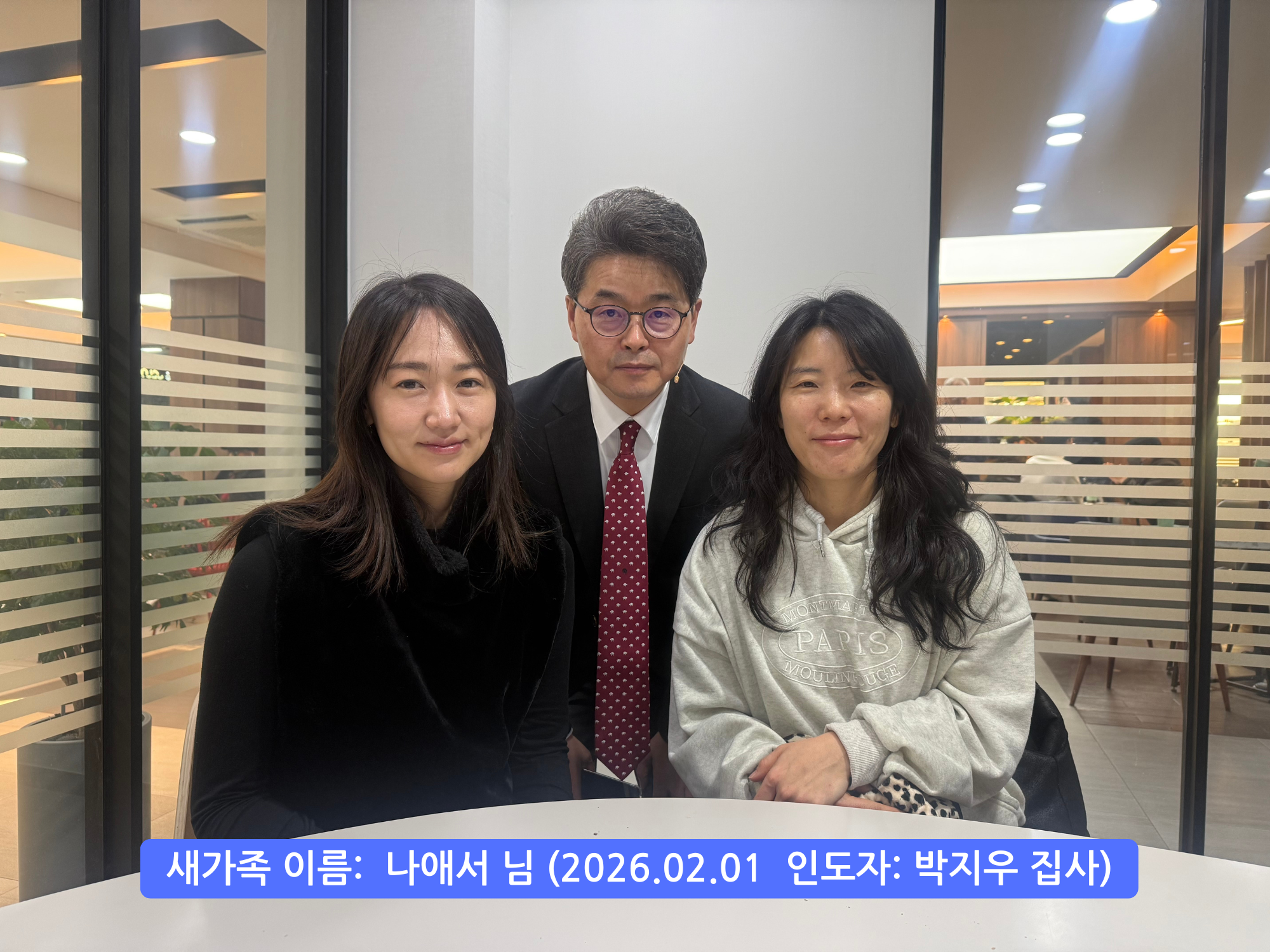[260201 등록 새가족] 나애서 님 작성일26.02.01 17:16 본문 공유 둥록 새가족 : 나애서 님인도자 : 박지우 집사 이전글[260222 등록 새가족] 김나영 님 26.02.22 다음글[260201 등록 새가족] 임시내 님 26.02.01